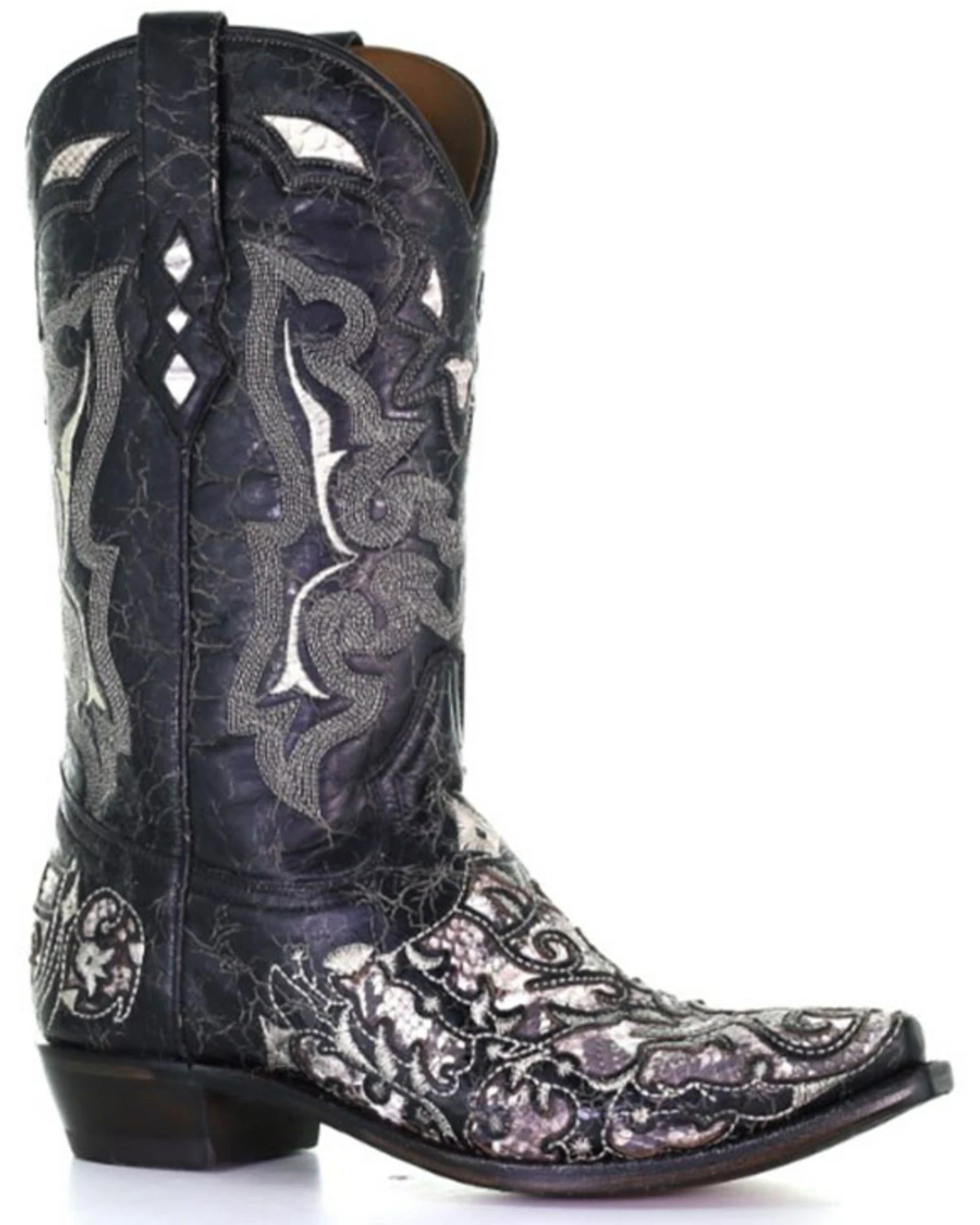 Corral Men’s Exotic Python Skin Inlay Western Boots – Snip Toe Black/white