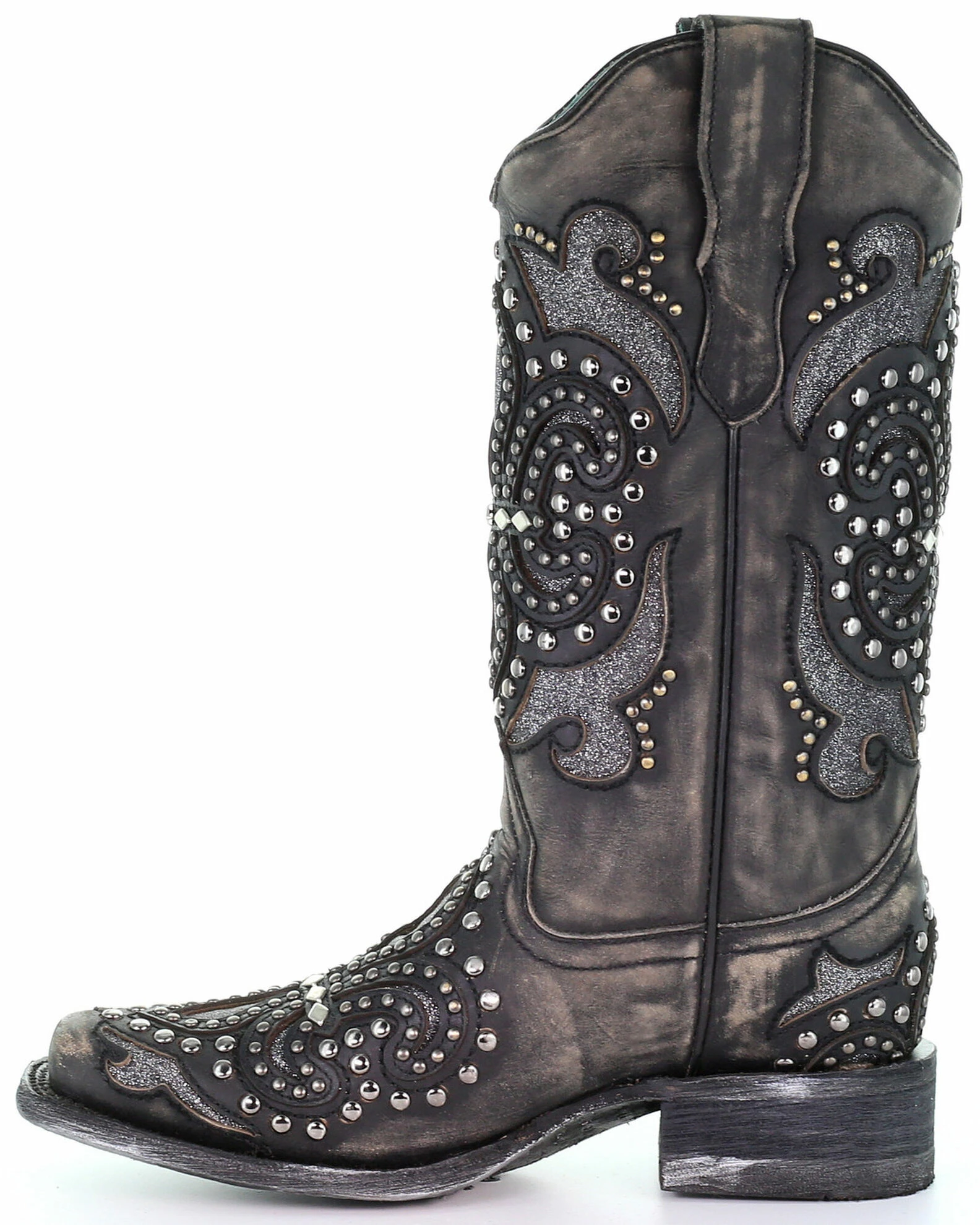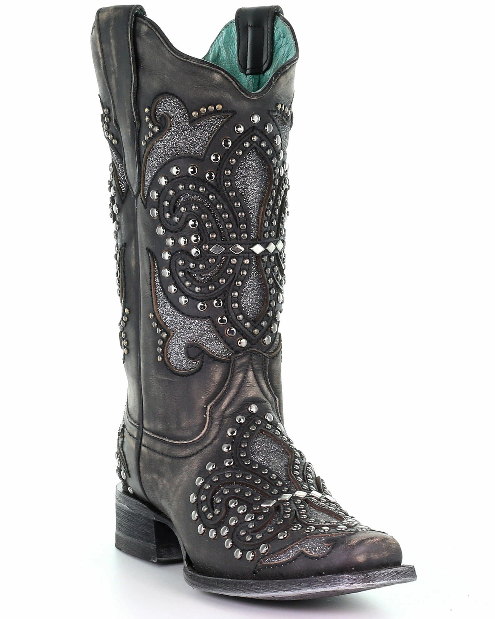 Corral Women’s Black Inlay Western Boots – Square Toe