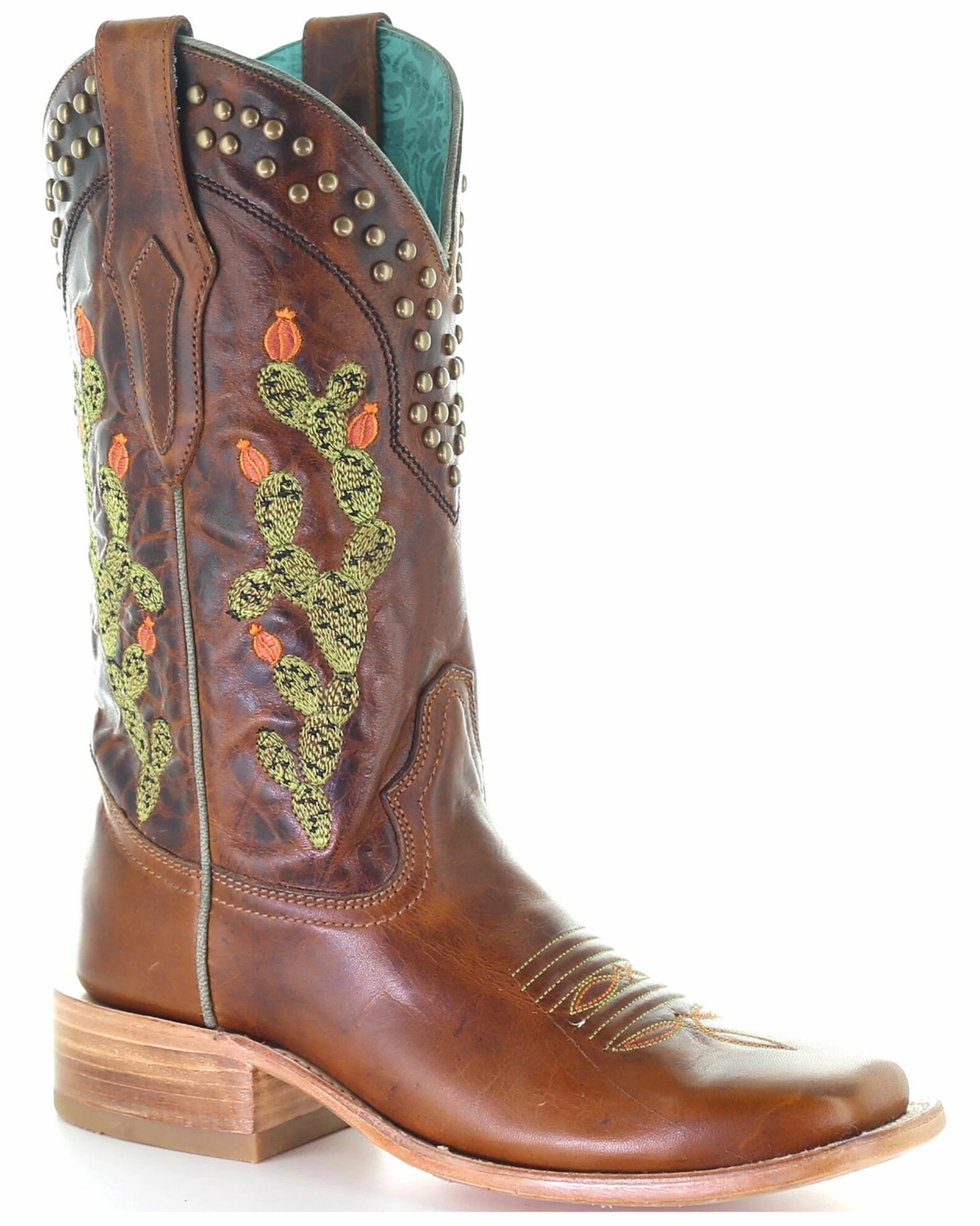 Corral Women’s Brown Embroidery & Studs Western Boots – Square Toe