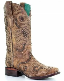 Corral Women’s Brown Overlay Western Boots – Square Toe
