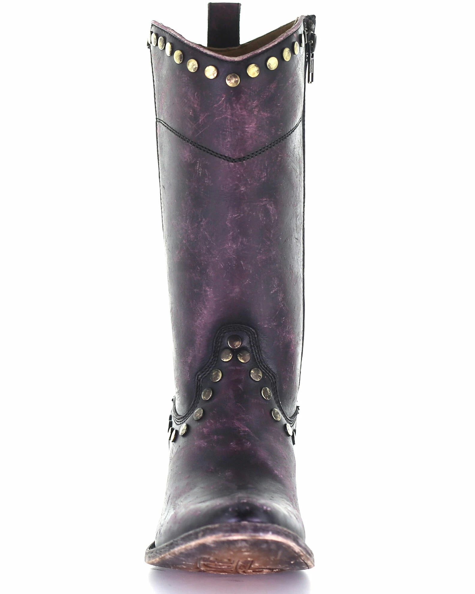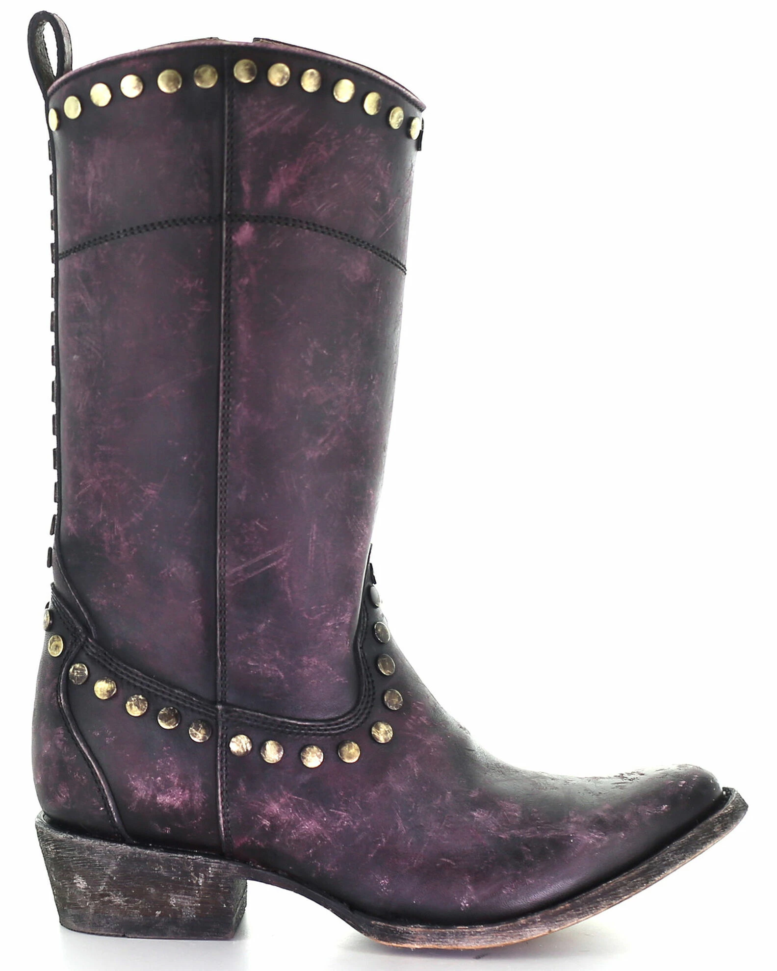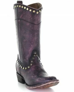 Corral Women’s Distressed Wine Zipper & Studs Western Boots – Round Toe