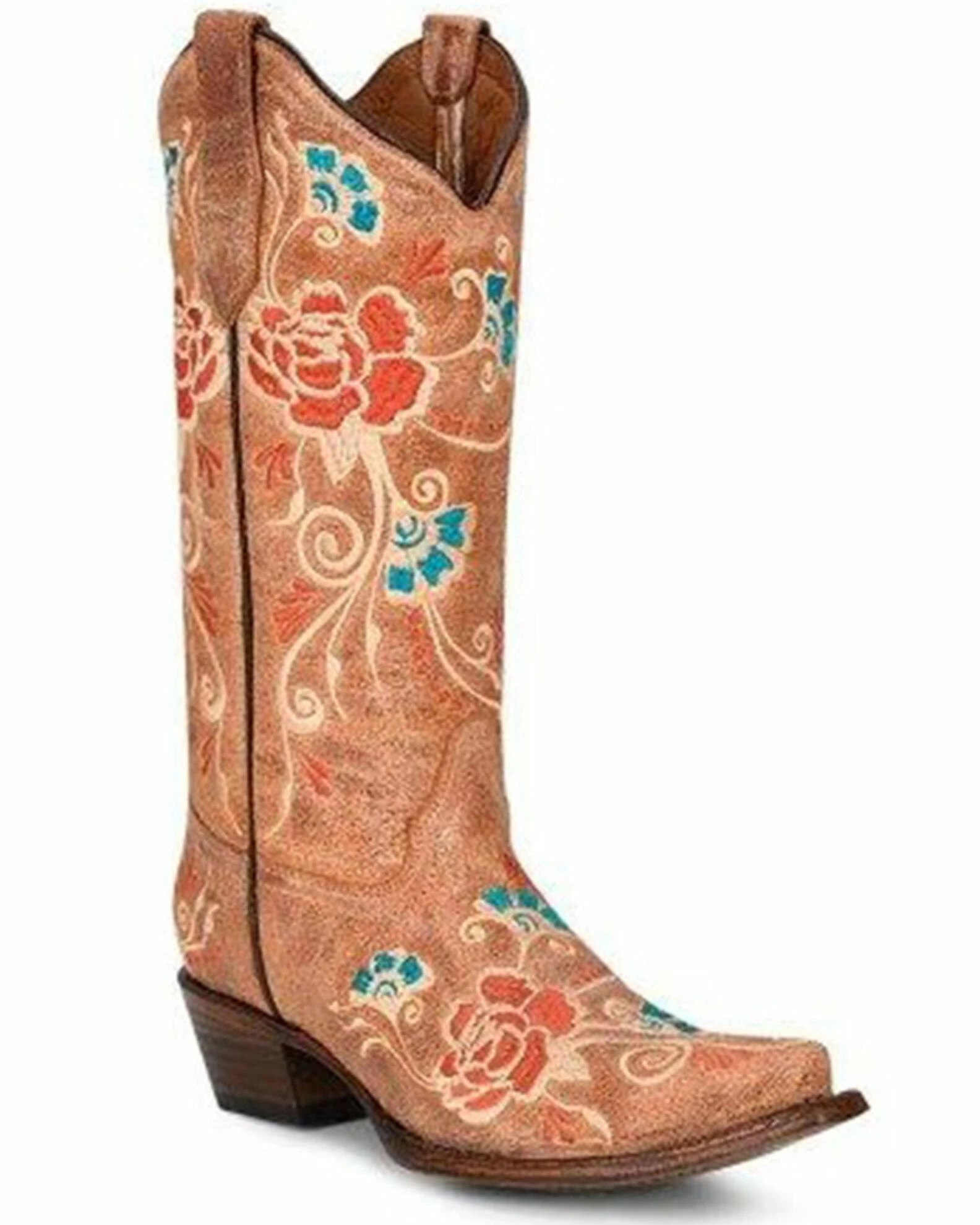 Corral Women’s Embroidered Floral Western Boots – Snip Toe Cognac