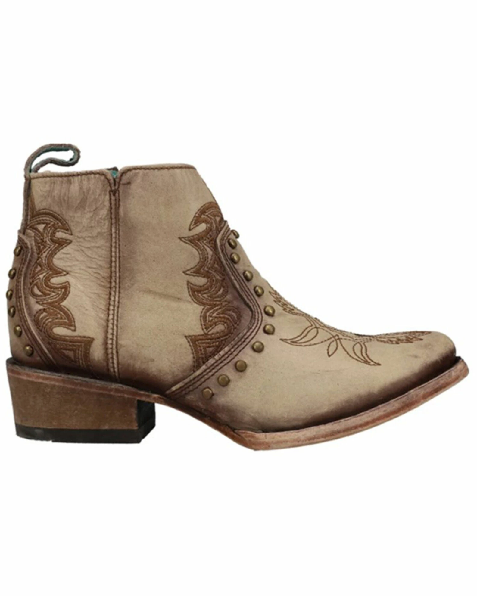 Corral Women’s Embroidery & Stud Booties – Round Toe Beige/khaki