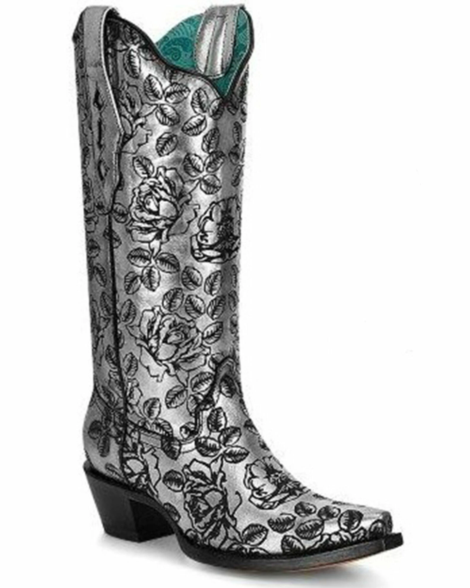 Corral Women’s Floral Laser Print Western Boots – Snip Toe Silver