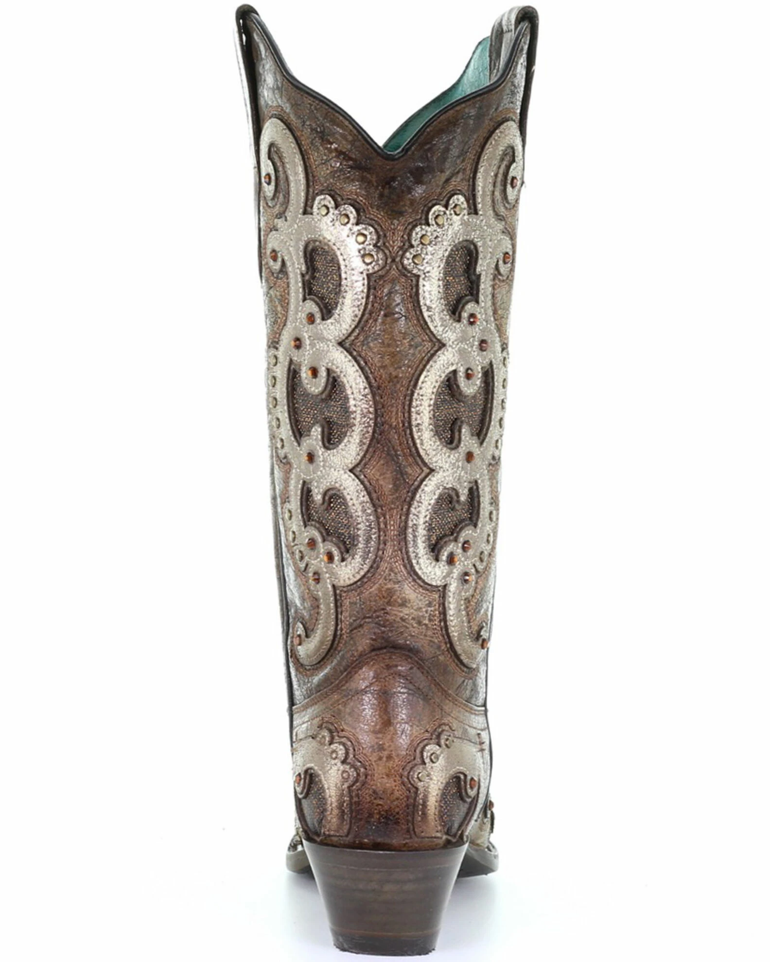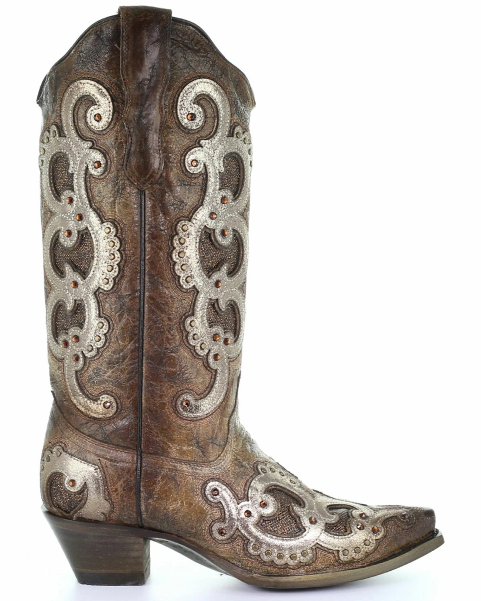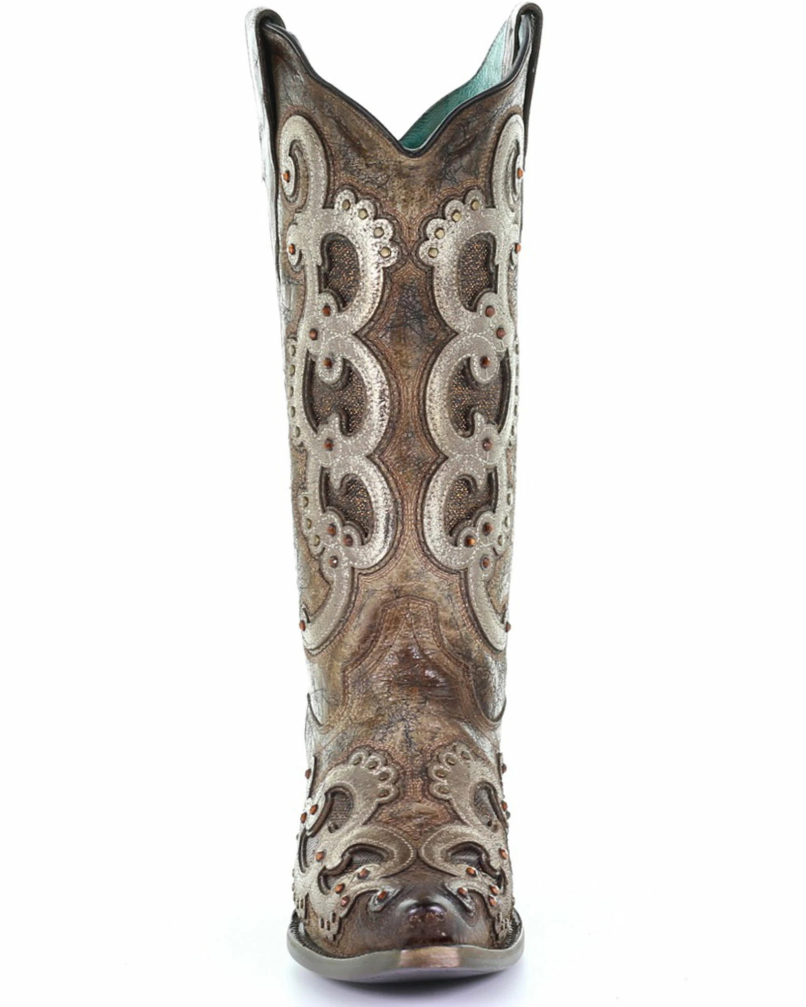 Corral Women’s Grey Overlay Western Boots – Snip Toe Brown