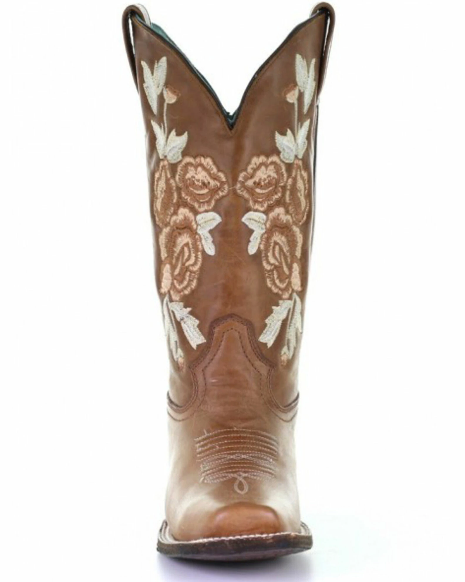 Corral Women’s Honey Floral Western Boots – Square Toe Tan