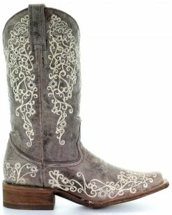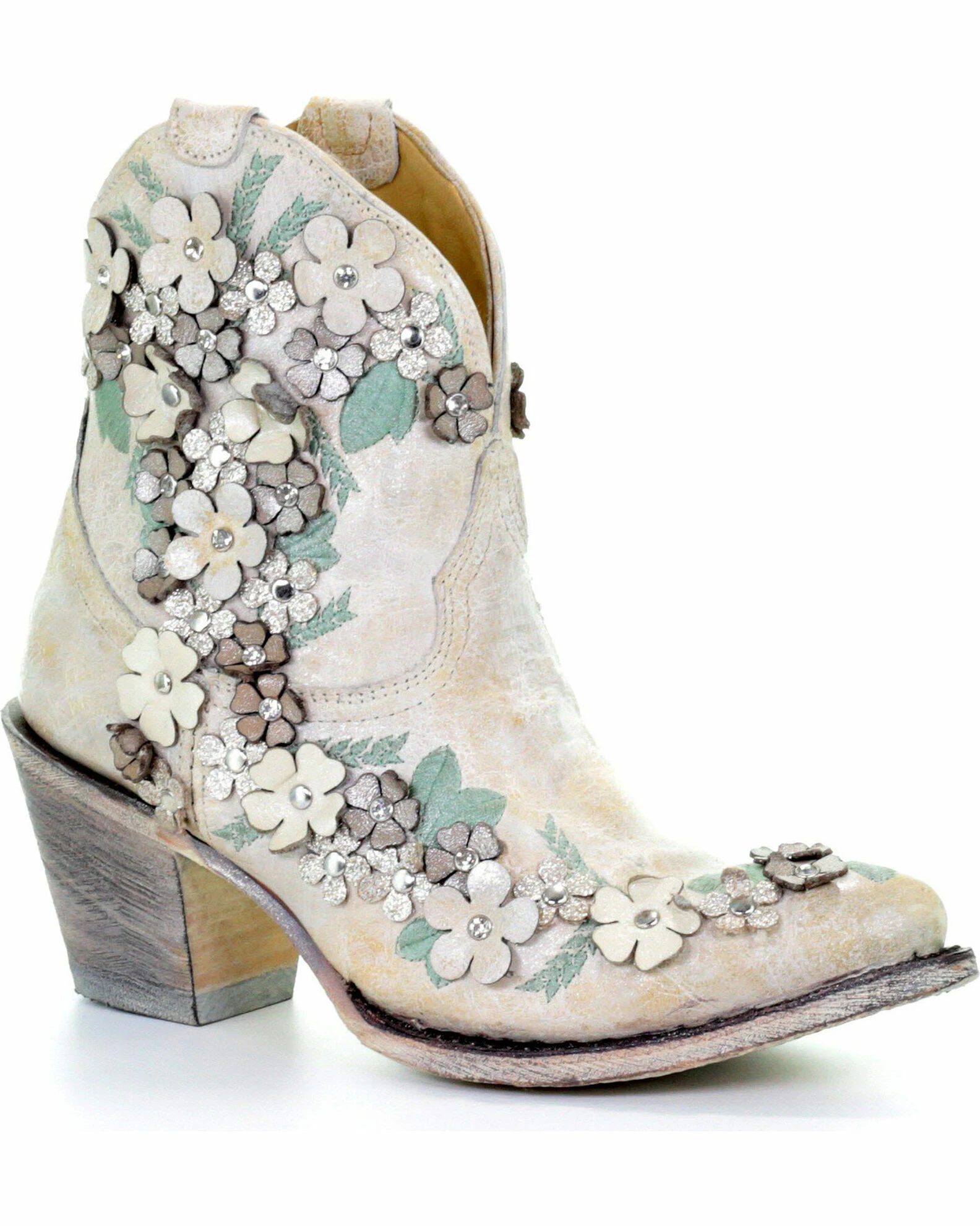Corral Women’s White Floral Overlay Booties – Round Toe